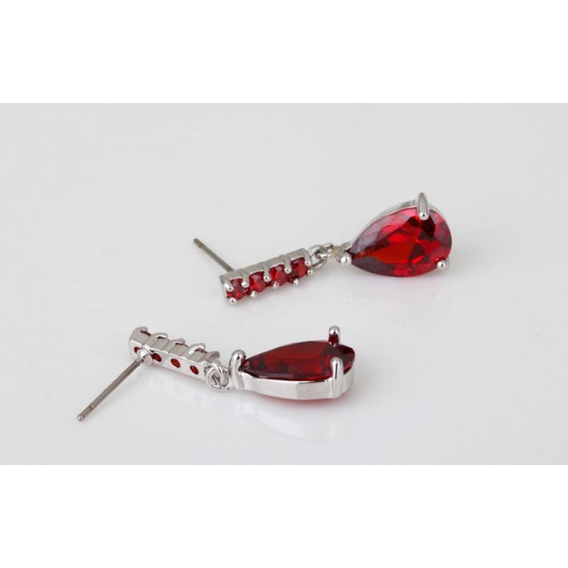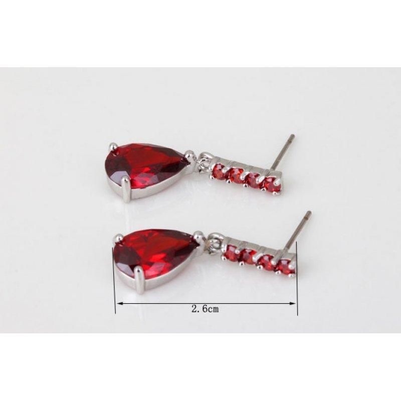 Cercei argint Lacrima, Rosu Ruby, Elemente Swarovski
