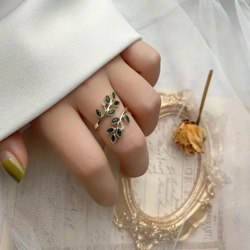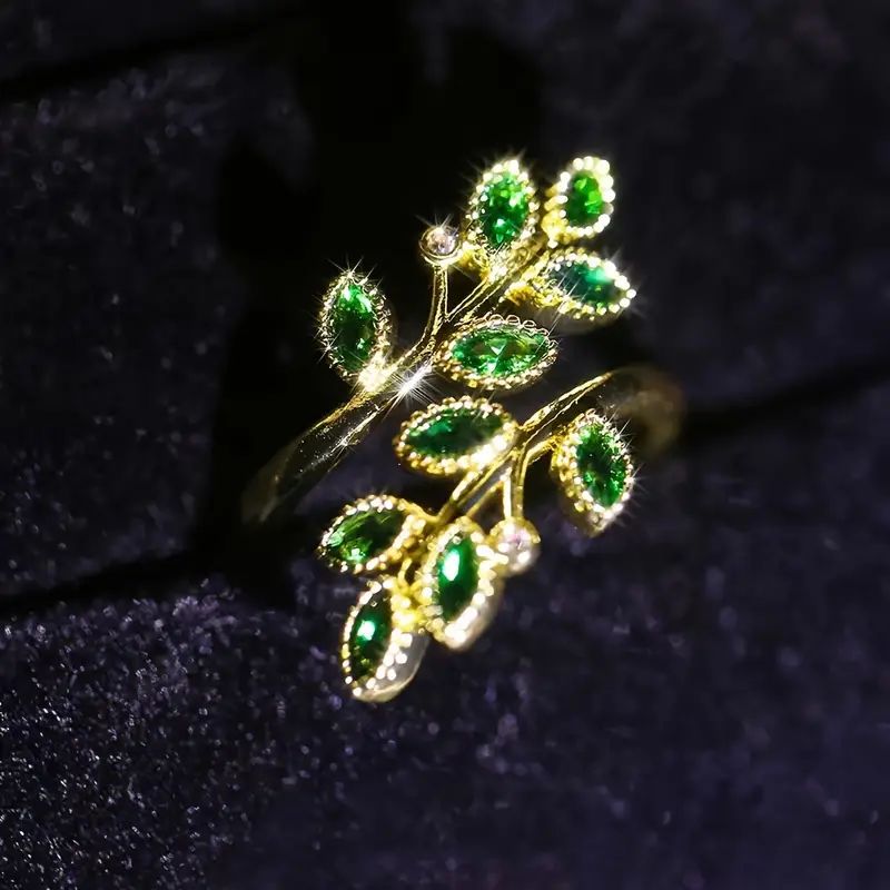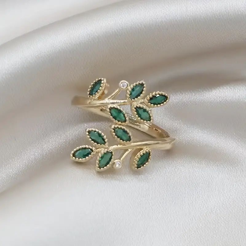 Inel argint femei placat cu aur 18k Emerald Leaf Gold