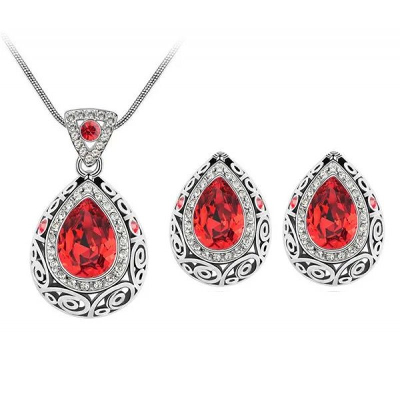 Set femei cercei lant si pandantiv Royal Red Madame Elemente Swarovski