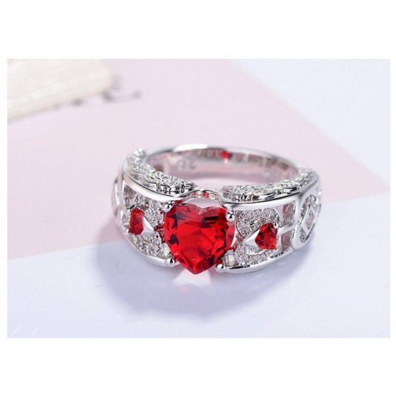Inel Red Love,Placat cu aur alb,Elemente Swarovski