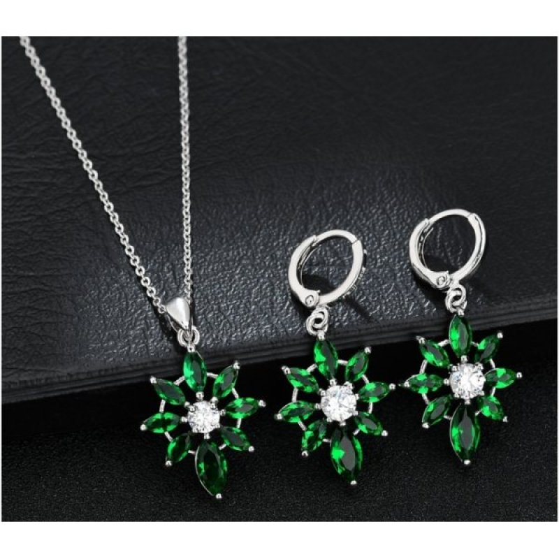 Set argint cu Green Force cu elemente swarovski Emerald verde