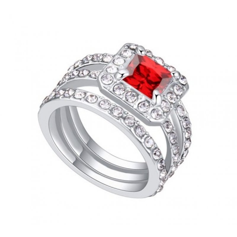 Inel argint Briliant, Rosu, Elemente Swarovski