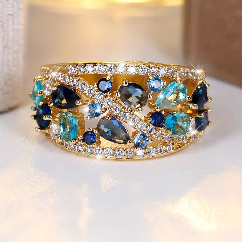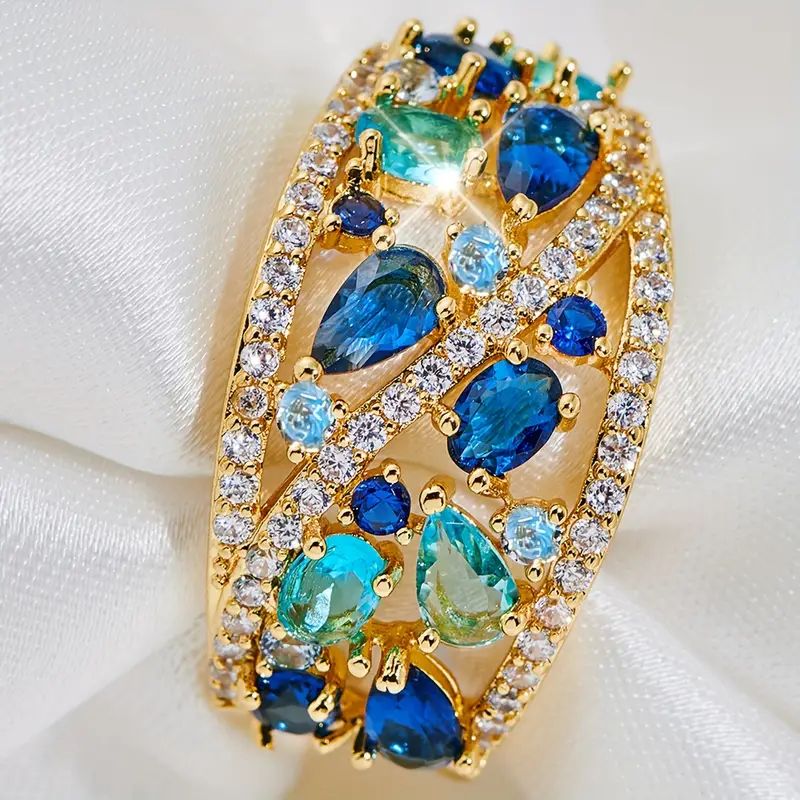 Inel argint femei placat cu aur 18k Boho Zirconia Multicolor