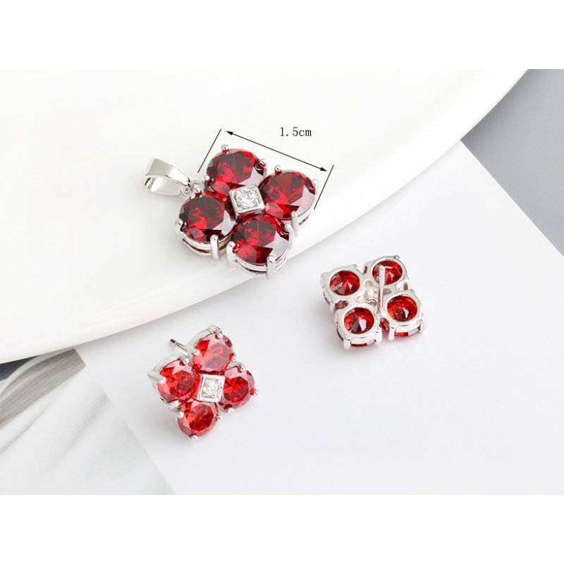 Set argint cu elemente Swarovski cu cvartet, rosu
