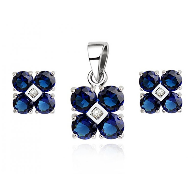 Set argint cu elemente SW cu cvartet,albastre