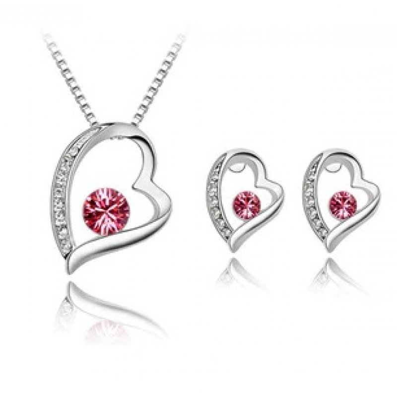 Set argint Cynthia Inima, Roz, Elemente Swarovski